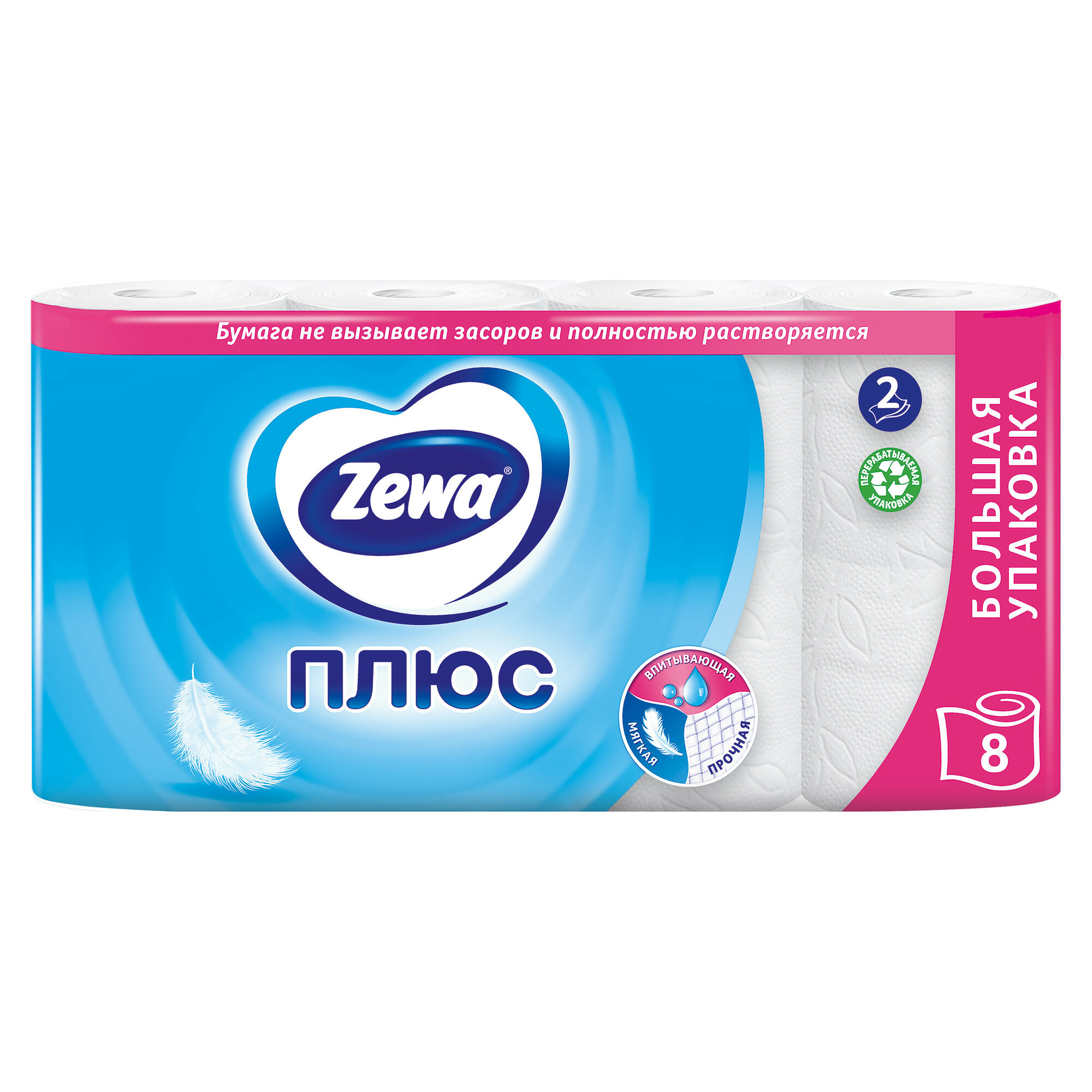 Туалетная бумага Zewa Плюс Белая, 2 слоя, 8 рулонов