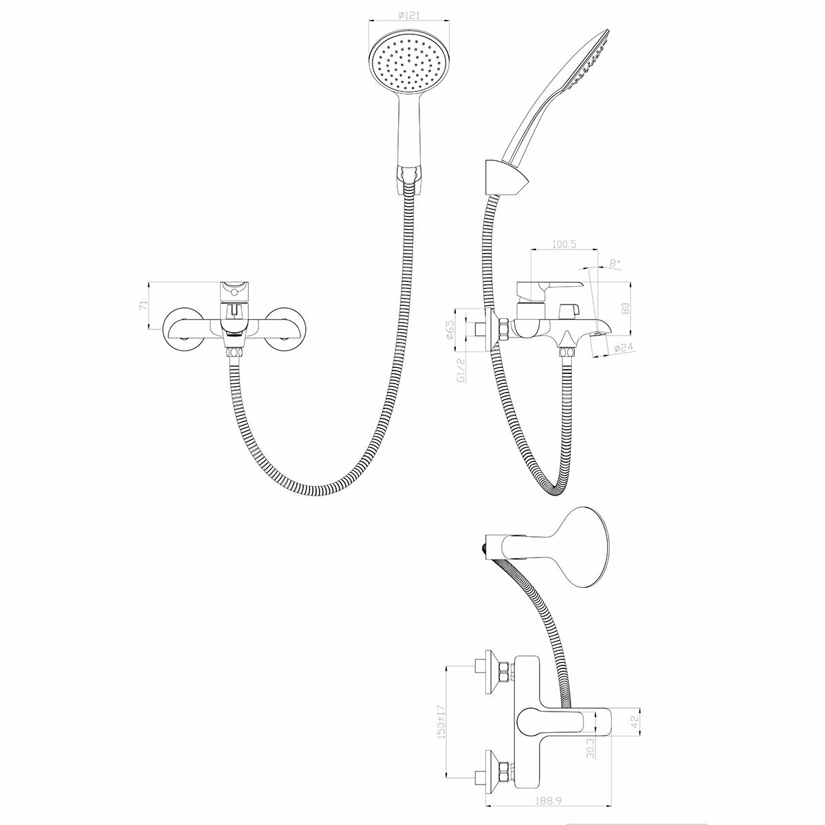 | Ручной душ (душевая лейка) | 1 режим |