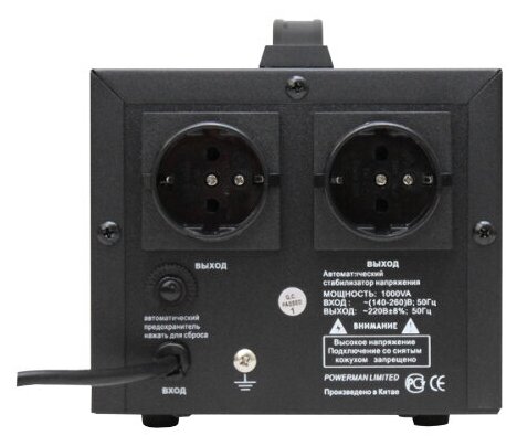 Стабилизаторы напряжения Стабилизатор напряжения Powerman AVS-1000D черный 2 розетки