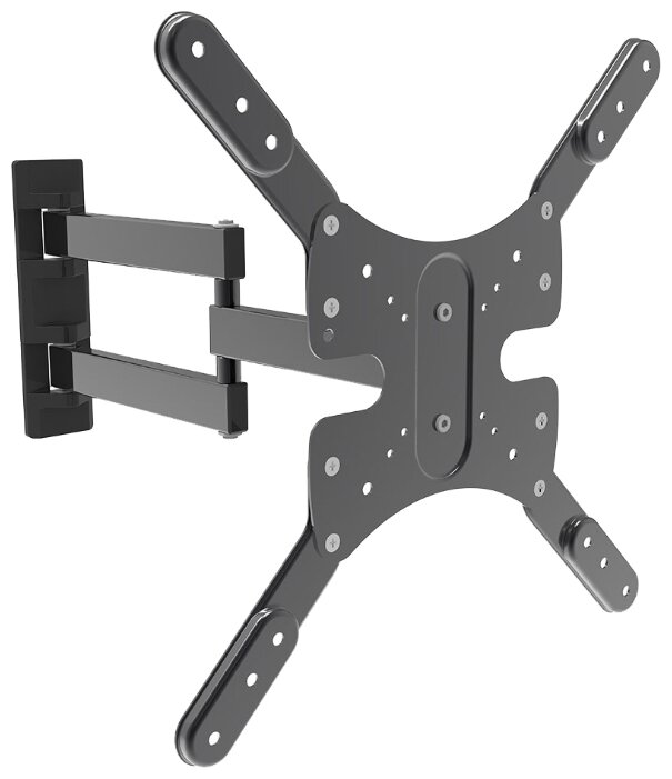 Лучшие цены. Настенное крепление для LCD и плазменных телевизоров с диагональю от 15 до 42 дюймов и весом не более 35 кг Угол наклона: есть (15градусов,-15 градусов) Угол поворота - 360 градусов Расстояние от стены (min-max): 56-610 мм Стандарт крепления VESA: 75х75, 100х100, 100х200, 200х200, 400x300, 400х400 мм Цвет: черный Функция коррекции после установки 33 градуса. Возможность смотреть телевизор под любым углом зрения. Магазины в вашем городе.
