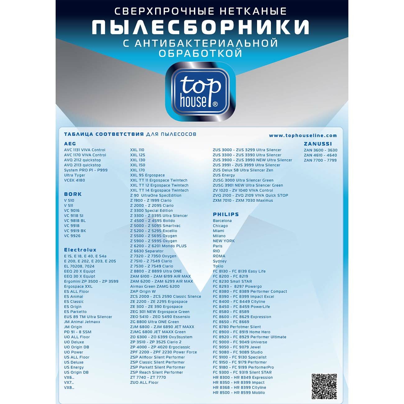 Пылесборники нетканые TOP House THN 2515 Е с антибактериальной обработкой, 8 шт. Top house 9399837