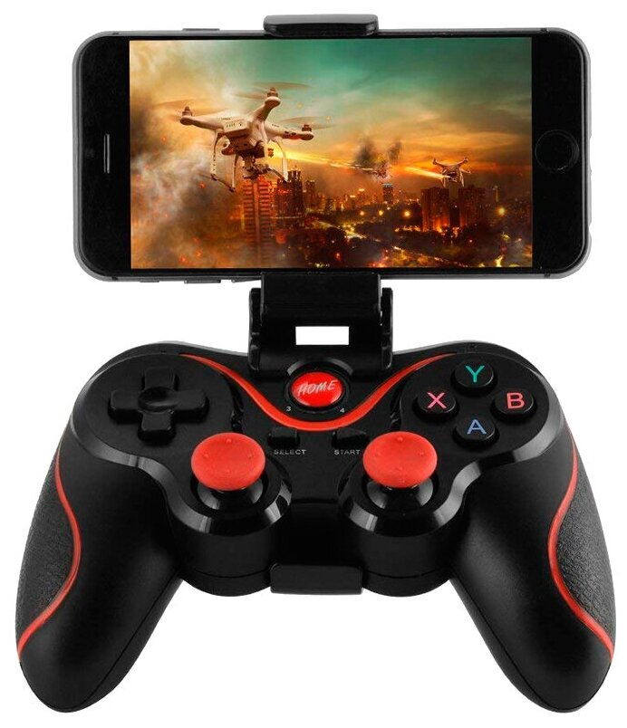 Лучшие цены. X3 имеет размер 145 на 105 мм, толщина 60 мм. Впереди 4 курковые кнопки. На передней панели вы обнаружите 2 аналоговых джойстика 360°, 4 классических кнопки X, Y, B, A и стрелки. Также есть кнопки Start и Select. Расстояние передачи до 8 метров. Вы можете использовать этот джойстик и на обычном компьютере при наличии Bluetooth или же через USB кабель, который идет в комплекте. Также возможна игра на Sony Playstation 3. Магазины в вашем городе.