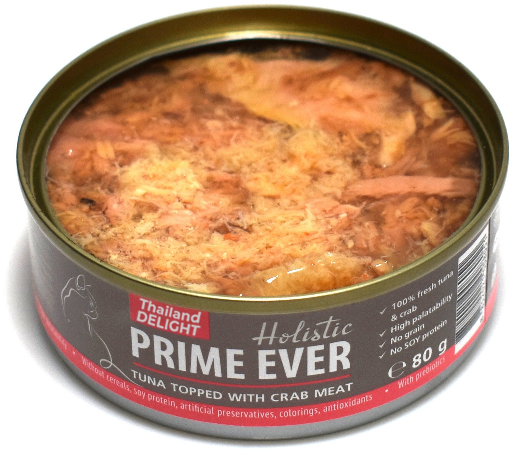PRIME EVER TUNA TOPPED WITH CRAB MEAT холистик для кошек и котят с тунцом и крабом в желе (80 гр х 24 шт)