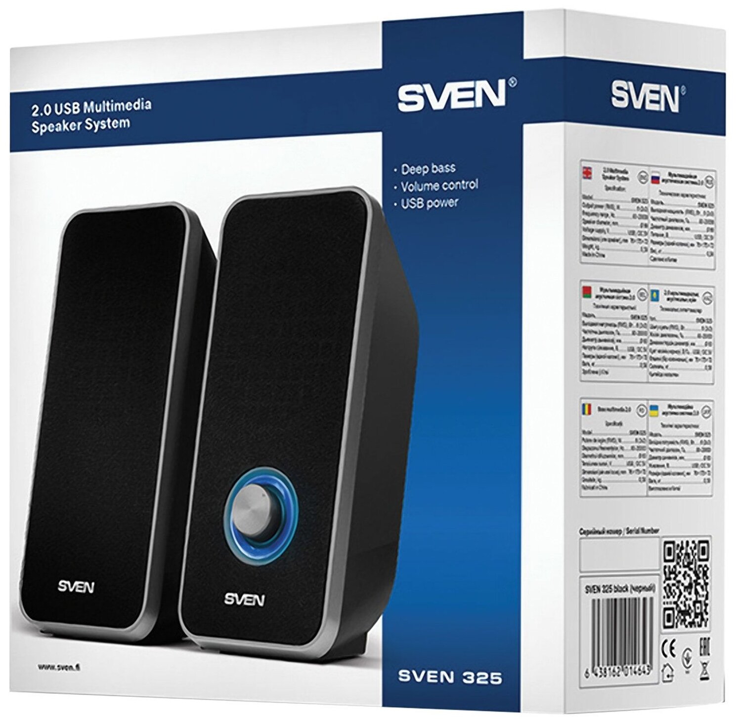 Колонки компьютерные SVEN 325 2.0 2х3 Вт пластик черные, 1 шт