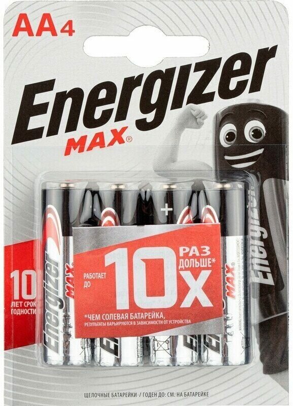 Батарейка Energizer Max AA/LR6, 4 уп., в упаковке: 4 шт.