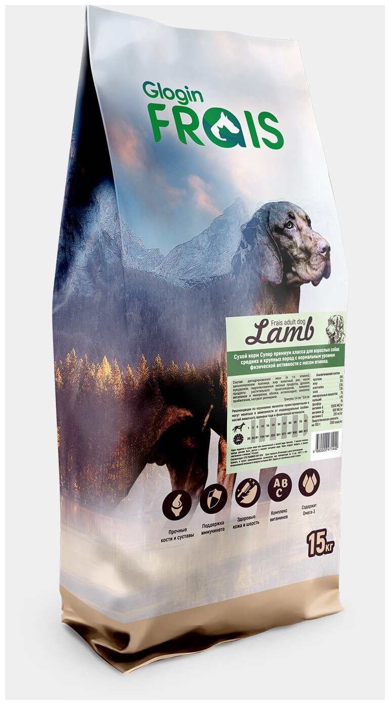 Сухой корм Frais для взрослых собак средних и крупных пород, ягненок 15 кг