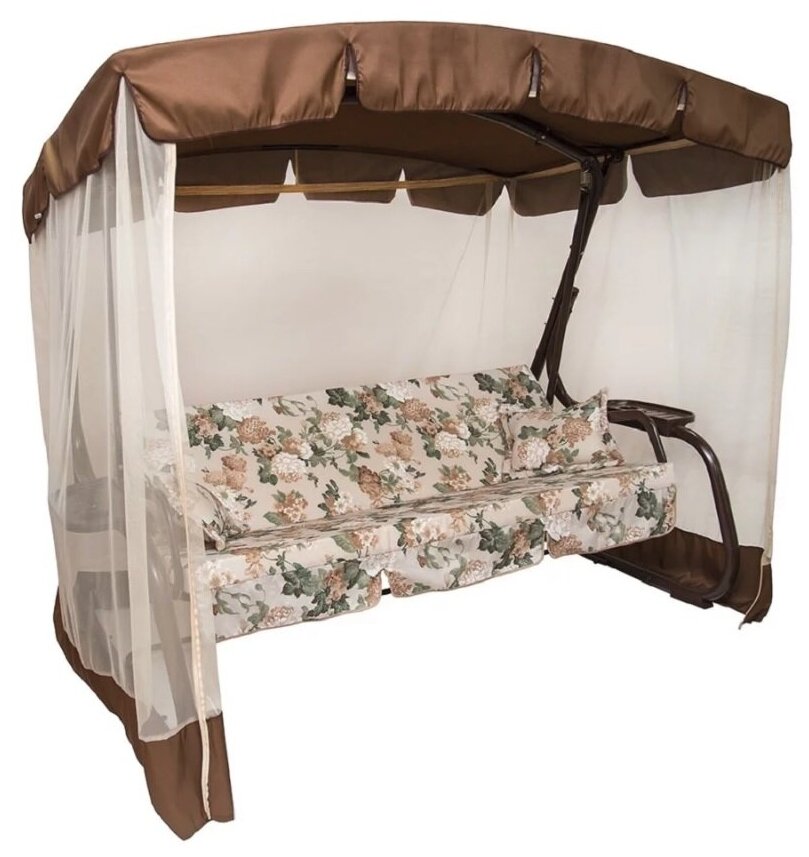 Качели садовые Турин с825, каркас коричневый, ткань цветы