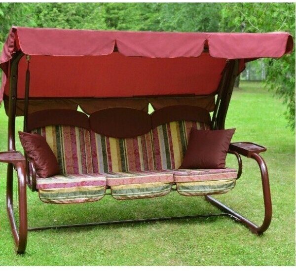 Качели садовые 3-х местные Ольса Мастак каркас бордовый, ткань разноцветная полоска с910