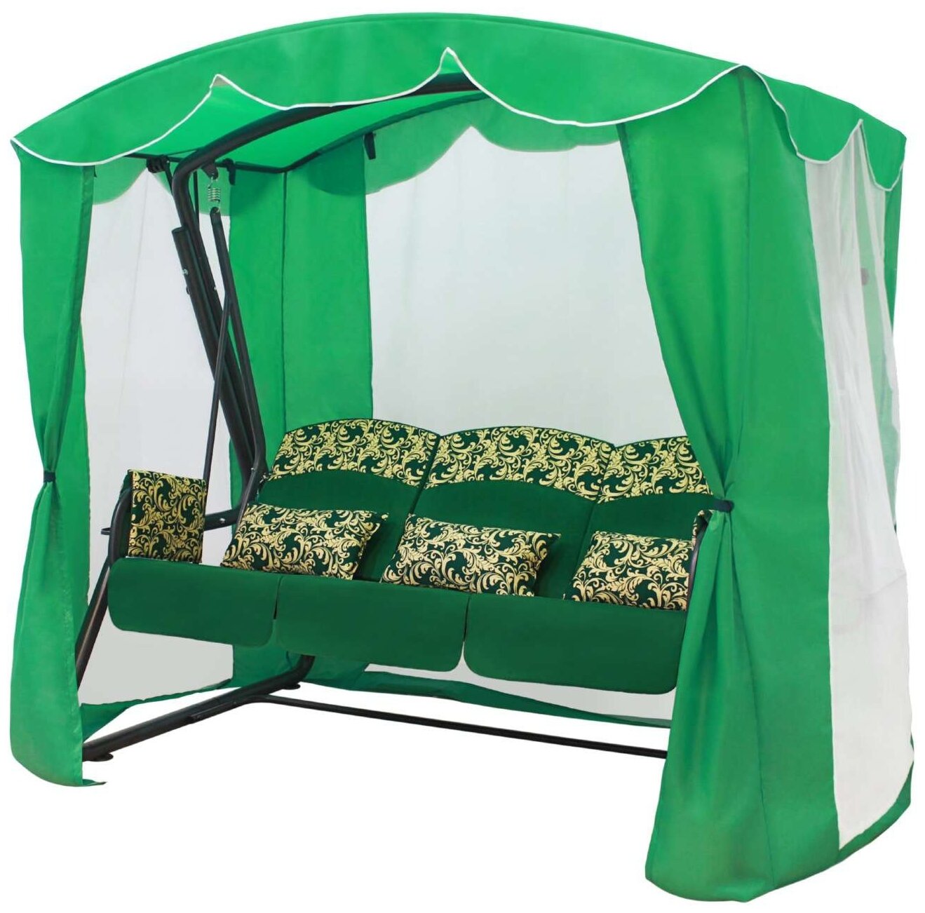 Садовая качель Садовые качели 3-местные 2021 с москитной сеткой Arno-Werk Оазис люкс Зеленые