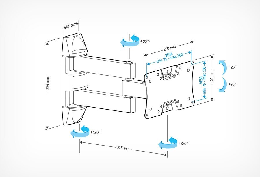 Кронштейн Holder LCDS-5065 черный для ЖК ТВ 19-32 настенный от стены 315мм наклон +15°/-25° поворот 350° VESA 200x100 до 30кг 1 370 ₽ Подробнее