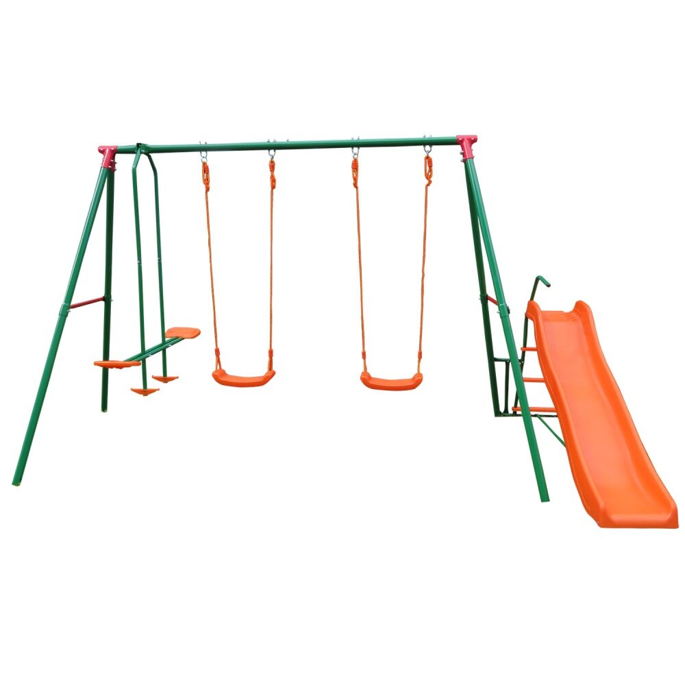 Лучшие цены. Конструкция предназначена для уличного монтажа – в качестве основного материала был выбран металл с антикоррозийным покрытием, защищающим от губительного воздействия влаги. Такая технология изготовления позволяет выдерживать большие нагрузки, поэтому на комплексе могут одновременно играть сразу несколько детей. Модель рассчитана на детей начиная с трехлетнего возраста. В комплектацию включены веревочные качели, горка и дополнительные двухместные качели. Магазины в вашем городе.