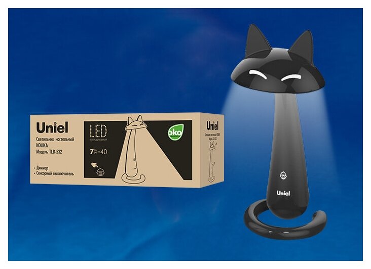 Светильник настольный Uniel TLD-532 Black/LED/360Lm/4500K/Dimmer «Кошка». 7W. Сенсорный выключатель. Диммер. Чёрный.