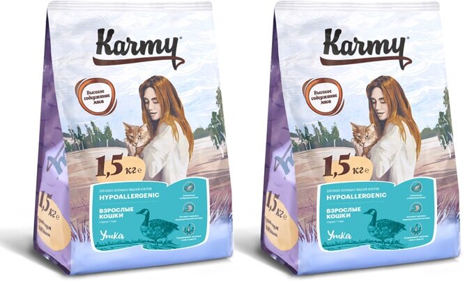 Karmy Сухой корм для кошек, склонных к пищевой аллергии с уткой 73321 | Karmy Hipoallergenic, 1,5 кг, 41976 (2 шт)