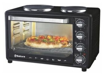 Духовка электрическая Sakura SA-7001HBK 3200Вт 35л+2конфорки,чёрный