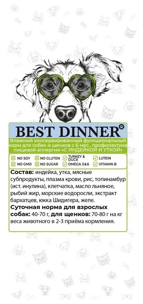 Корм для собак Консервы для собак Best Dinner Exclusive Vet Profi Hypoallergenic С индейкой и уткой 0,34кг