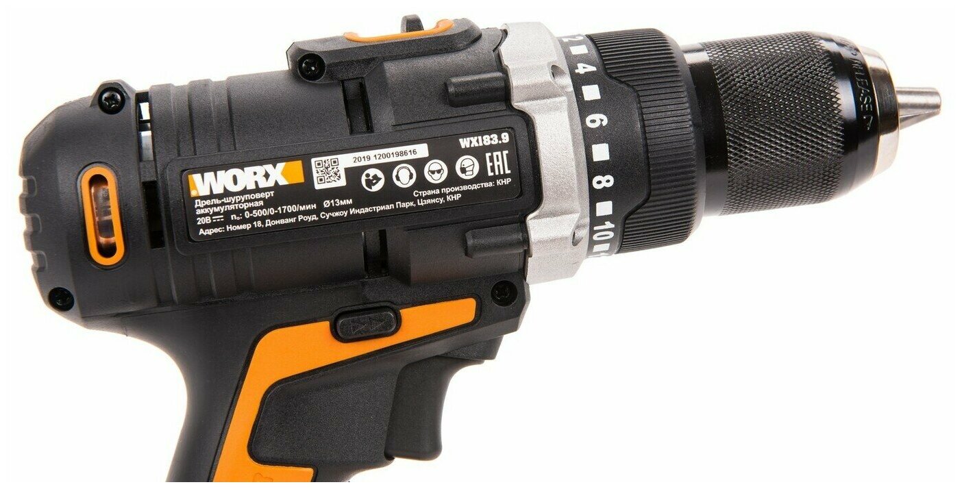 Лучшие цены. Внимание ! Аккумулятор и зарядное устройство приобретаются отдельно, в комплект не входят. WORX WX183.9 это универсальная, безударная, компактная и легкая дрель-шуруповерт. Имеет быстрозажимной 13 мм патром с блокировкой шпинделя, фиксация оснастки одной рукой. А также 2 рабочие скорости, одна предназначена для работы с крепежом, а вторая для сверления. Наличие муфты регулировки крутящего момента(18+1 позиций ступеней) позволит максимально точно выбрать режим работы. Магазины в вашем городе.