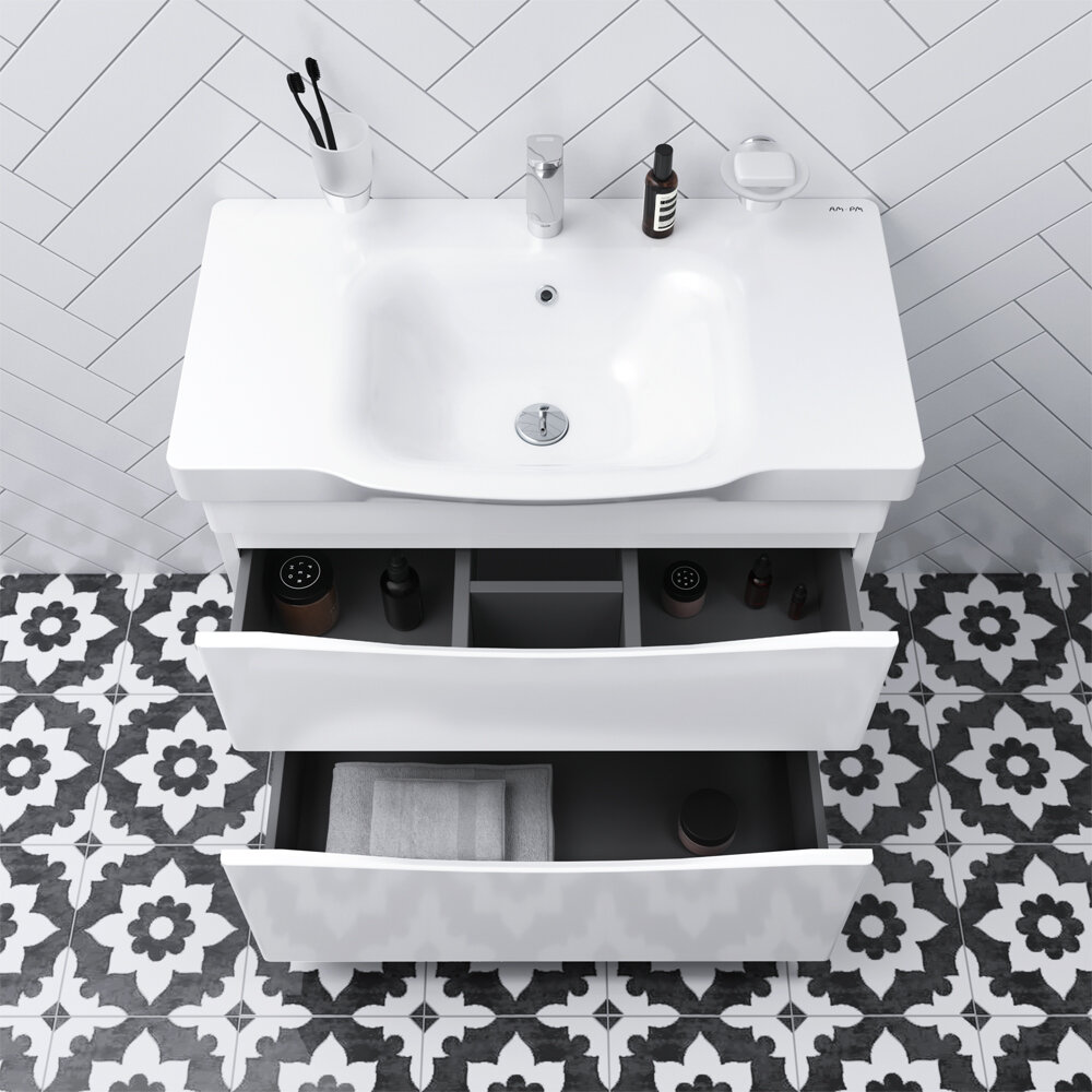 Тумба под раковину AM.PM Like M80FSX0802WG 80 см, белый глянец, напольная, 2 ящика, Германия