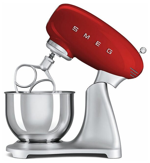 Кухонные комбайны Миксеры SMEG/ Планетарный миксер, Мощность 0,8 кВт; Объем чаши 4,8л; Регулировка скорости, 2 насадки для взбивания, 1 насадка для теста, крышка для чаши, красный