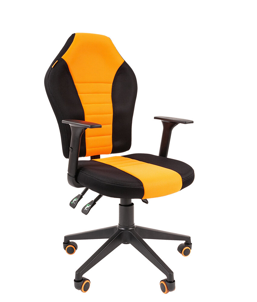 Игровое кресло Chairman game 8 чёрное/оранжевое (ткань, пластик, газпатрон 3 кл, ролики, механизм качания)