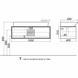 Тумба под умывальник Aqwella Genesis 100 подвесная, белый GEN0110W