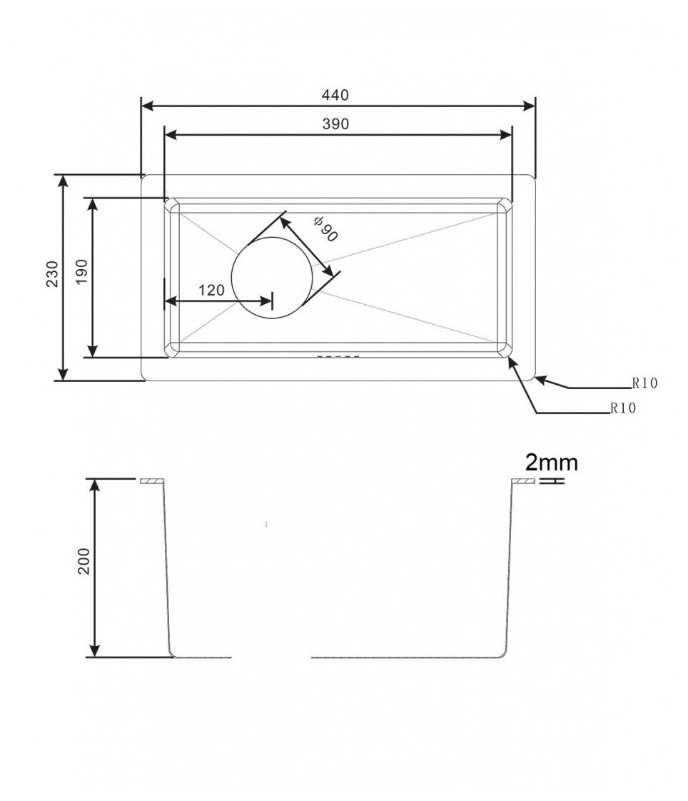 | Размеры основной чаши (ДхШхГ) | 390x190x200 мм |