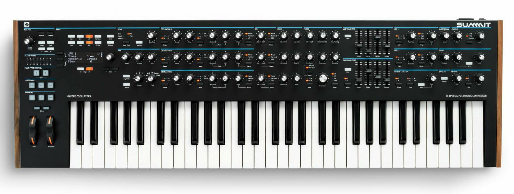 Синтезатор Novation Summit двухмодульный 16ти голосый полифонический синтезатор. 61 клавиша с тремя оксфордскими осциляторами