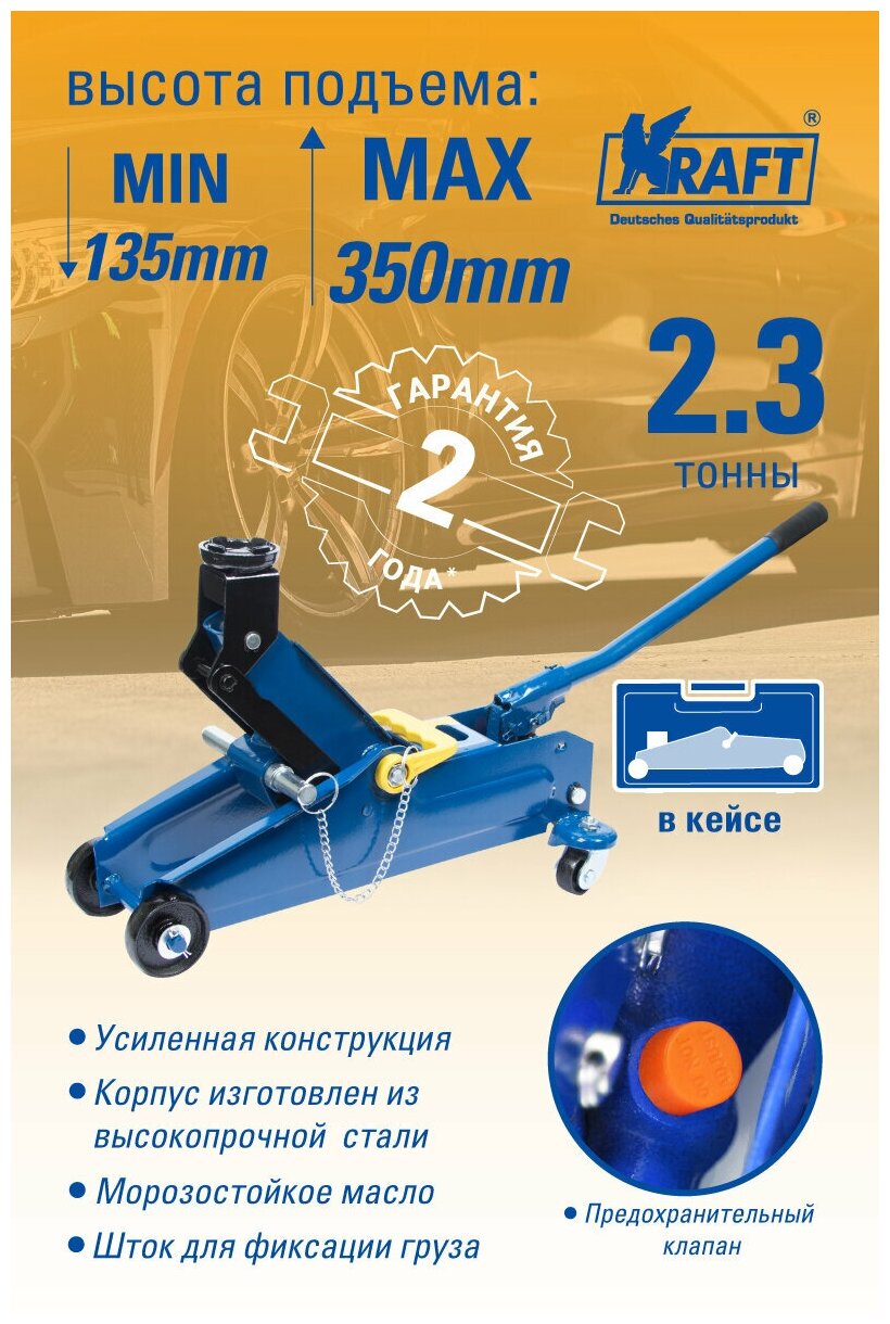 Домкрат гидравлический подкатной 2,3 т 135-350 мм кейс Kraft KRAFT KT820009 | цена за 1 шт