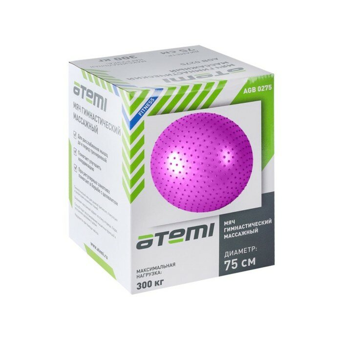 Лучшие цены. Мяч гимнастический массажный Atemi AGB0275, 75 см Вес: 1400 г. Количество в упаковке: 1 Длина упаковки: 24 Высота упаковки: 18 Ширина упаковки: 18 Объем упаковки: 7.776 Объем продукта: 7.776 Набор: Нет Цвет: Фиолетовый Диаметр, см: 75 Вид: Мяч. Магазины в вашем городе.