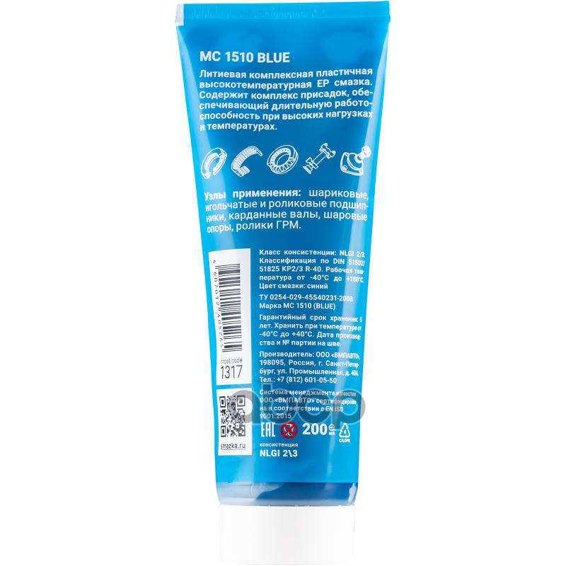 Лучшие цены. Смазка Мс 1510 Blue Высокотемпературная Комплексная Литиевая (200мл) Туба. Магазины в вашем городе.