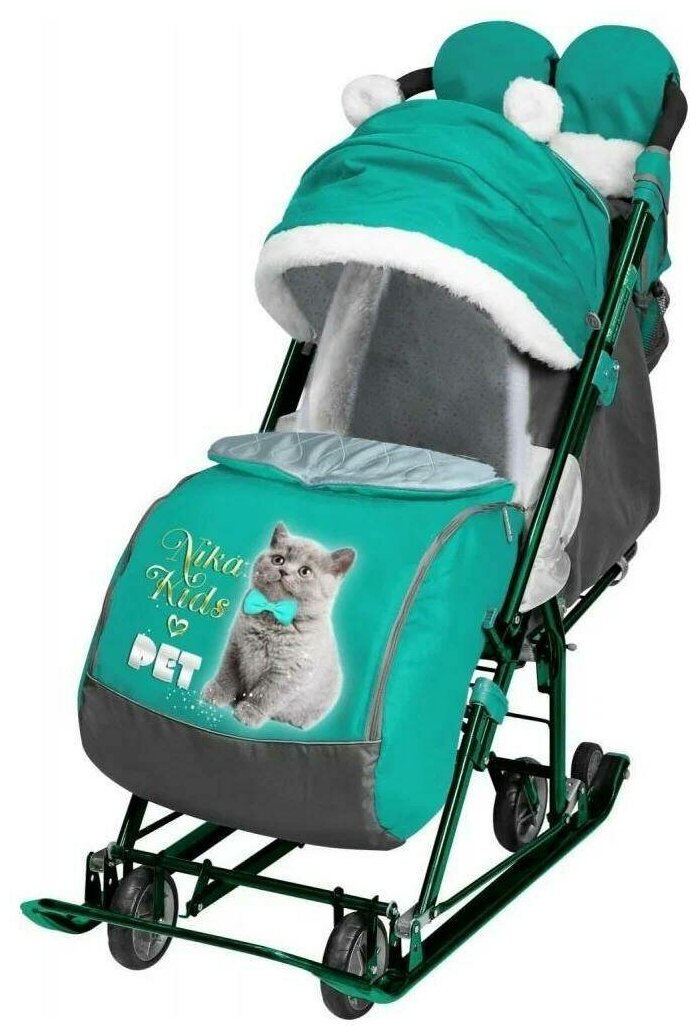 Санки-коляска Nika - Ника Детям 7-6 (НД7-6), с Котенком изумруд