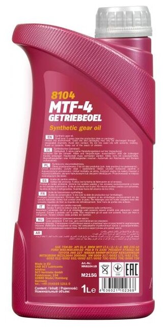 8104-1 Mannol Mtf-4 Getriebeoel 75w80 Синтетическое Трансмиссионное Масло 75w80 Gl-4 1л MANNOL арт. MN8104-1 1 174 ₽ Подробнее