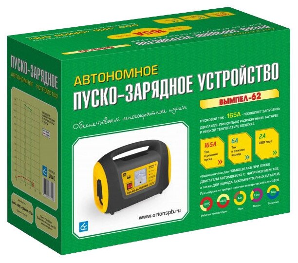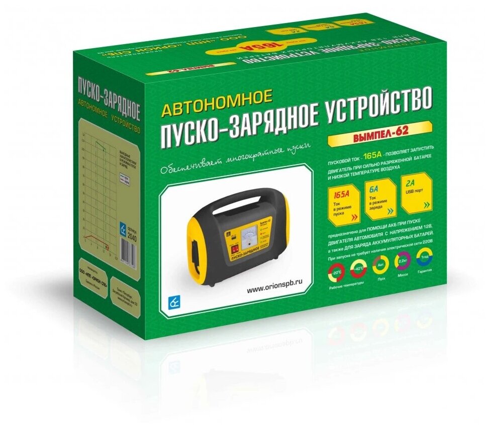 Вымпел Устройство зарядное 12В (автономное пуско-заряд,165А/6А автомат,33.6Вт/ч,9000мАч) Вымпел-62 "Орион НПП"