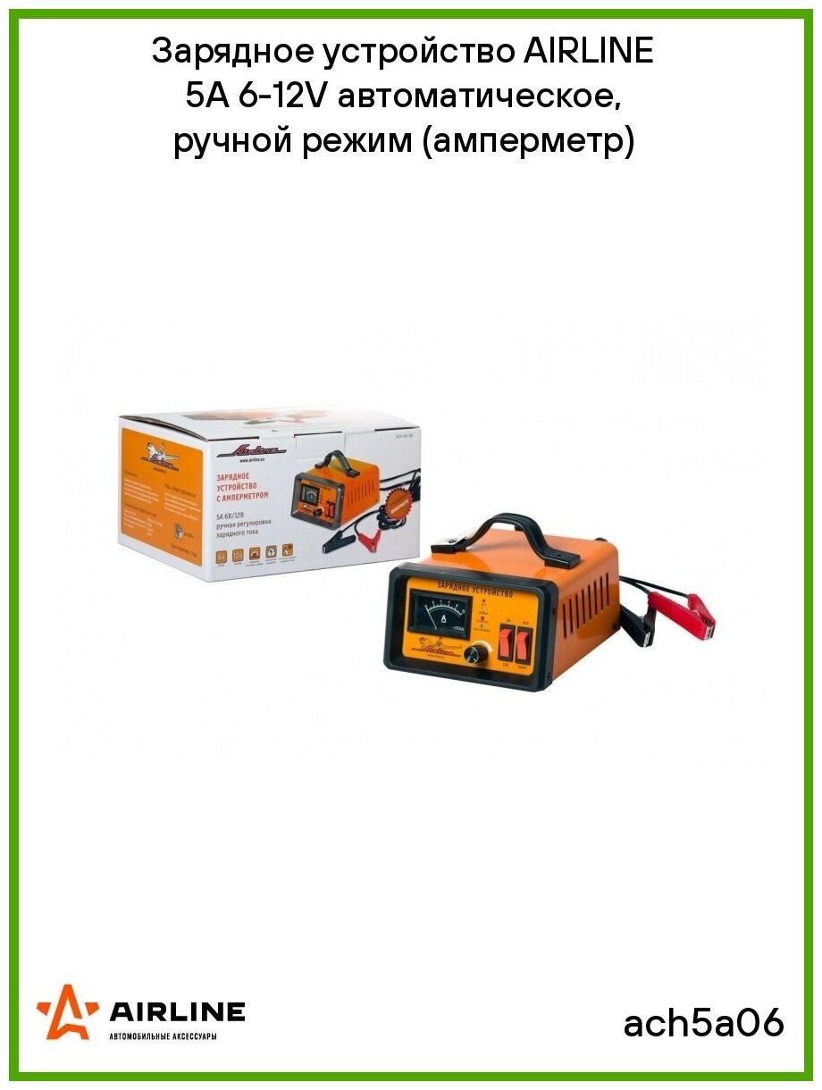 Зарядное устройство 5А 6В/12В, амперметр, ручная регулировка зарядного тока 5А, 6В/12В амперметр, ручная регулировка зарядного тока | AIRLINE ACH5A06 |