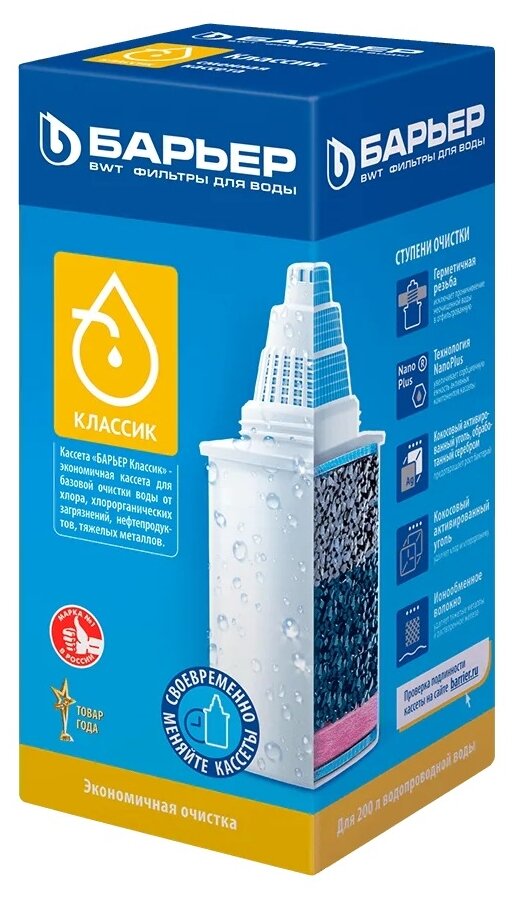 Картриджи для воды Сменная КАСCЕТА барьер (200 л, классик, экономичная очистка, (9007))