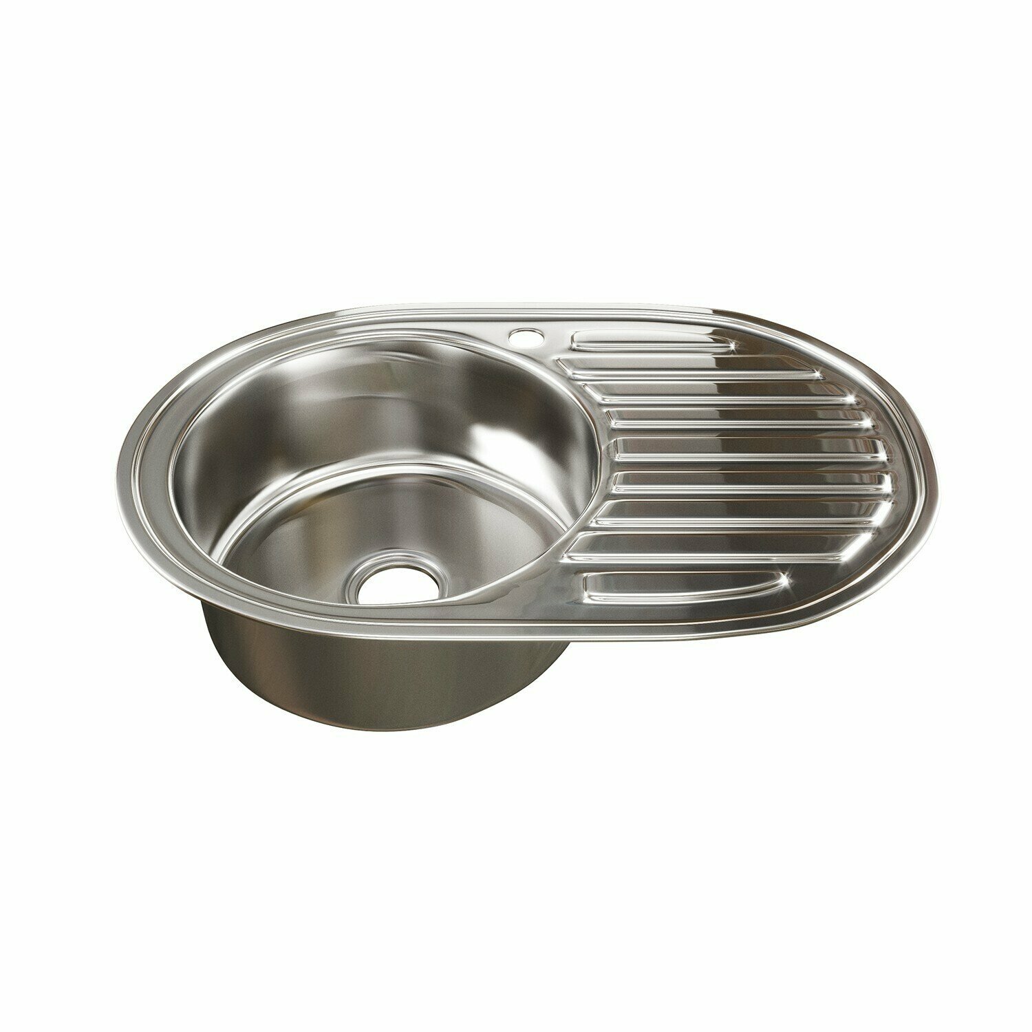 Врезная кухонная мойка Mixline из нержавеющей стали овальная 50х77 см выпуск 3 1/2 глубина 18 см, крыло правое