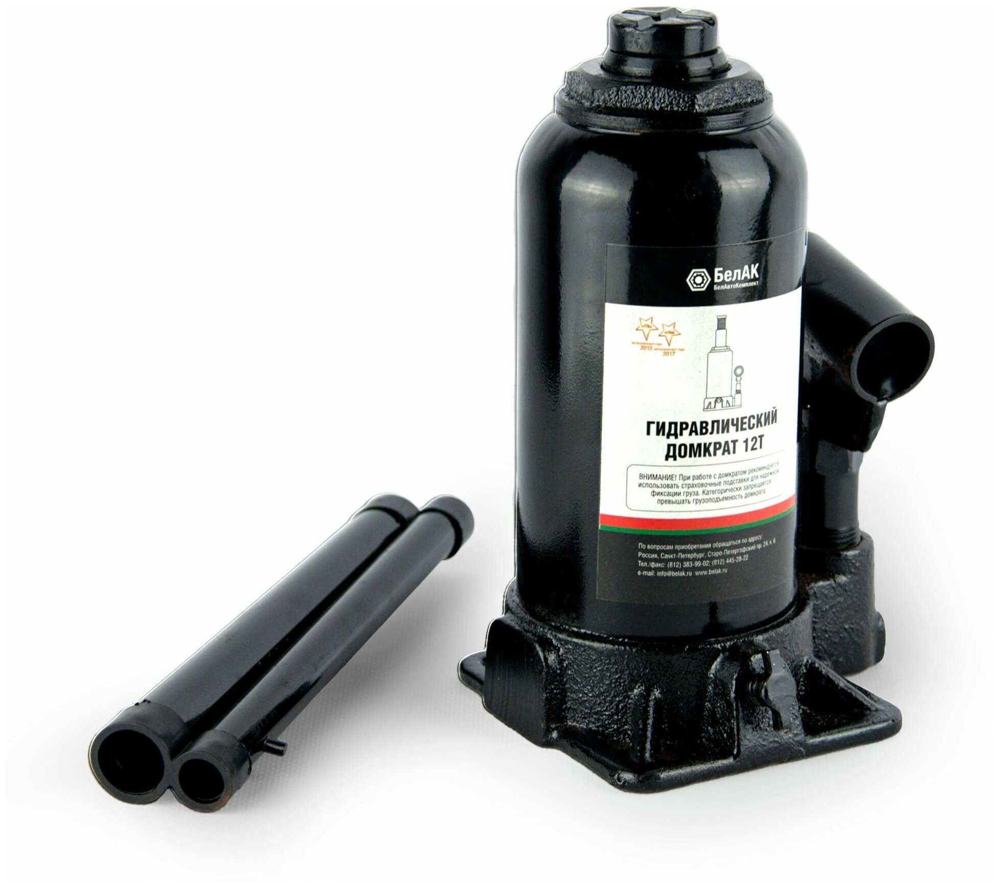 Лучшие цены. Домкрат гидравлический бутылочный 12 тонн "БелАК" БАК.00046 разработан российским производителем «БелАК», награждённым двумя национальными премиями «Автокомпонент года» и «Автоаксессуар года» за высокое качество и надежность выпускаемых домкратов. Продукция «БелАК» соответствуют нормам сертификации ISO9001 и ЕАС. Двойная электрохимическая полировка гарантирует идеальную защиту штока домкрата от коррозийного налета, и полностью устраняет неровности, которые могут повредить уплотнительные манжеты. Магазины в вашем городе.
