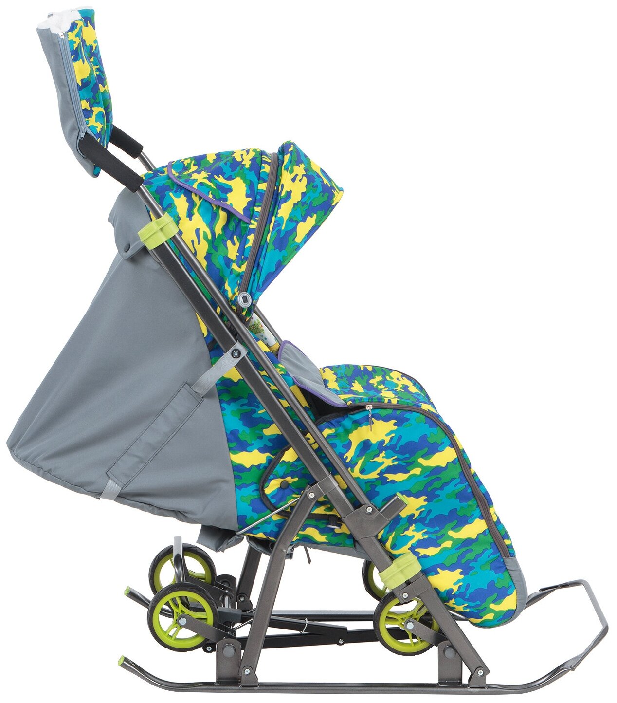 Санки-коляска SNOW GALAXY Kids-3-1 Камуфляж на больших колесах+сумка+варежки