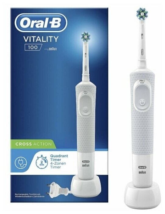 Электрическая зубная щетка Oral-B Vitality CrossAction D100.413.1, белая