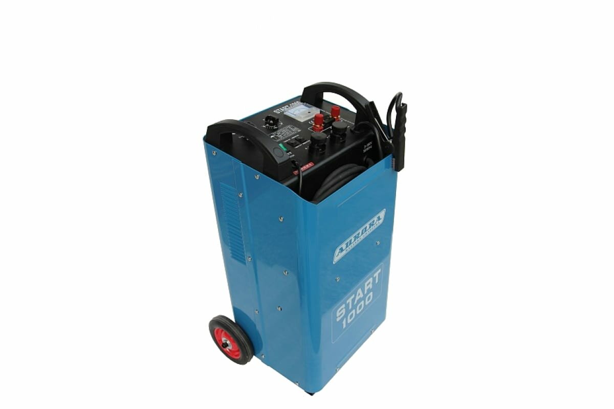 Лучшие цены. Дополнительные технические характеристики: Напряжение питающей сети: 380 В; Выходное напряжение: 12/24 В; Ток зарядки: 100 А; Расчетная емкость аккумулятора (15 часов, мин/макс) 20/1200 А/ч; Потребляемая мощность в режиме "зарядка": 2.5 кВт; Потребляемая мощность в режиме "пуск" 20 кВт; Максимальный стартовый ток: 1000 А. Пуско-зарядное устройство START 1000 служит для зарядки аккумуляторов со свободным электролитом напряжением 12/24В и для быстрого пуска всех типов легковых автомобилей. Магазины в вашем городе.