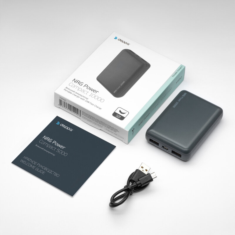 Портативный аккумулятор Deppa NRG Power Compact, 10000 mAh, серый (RU)