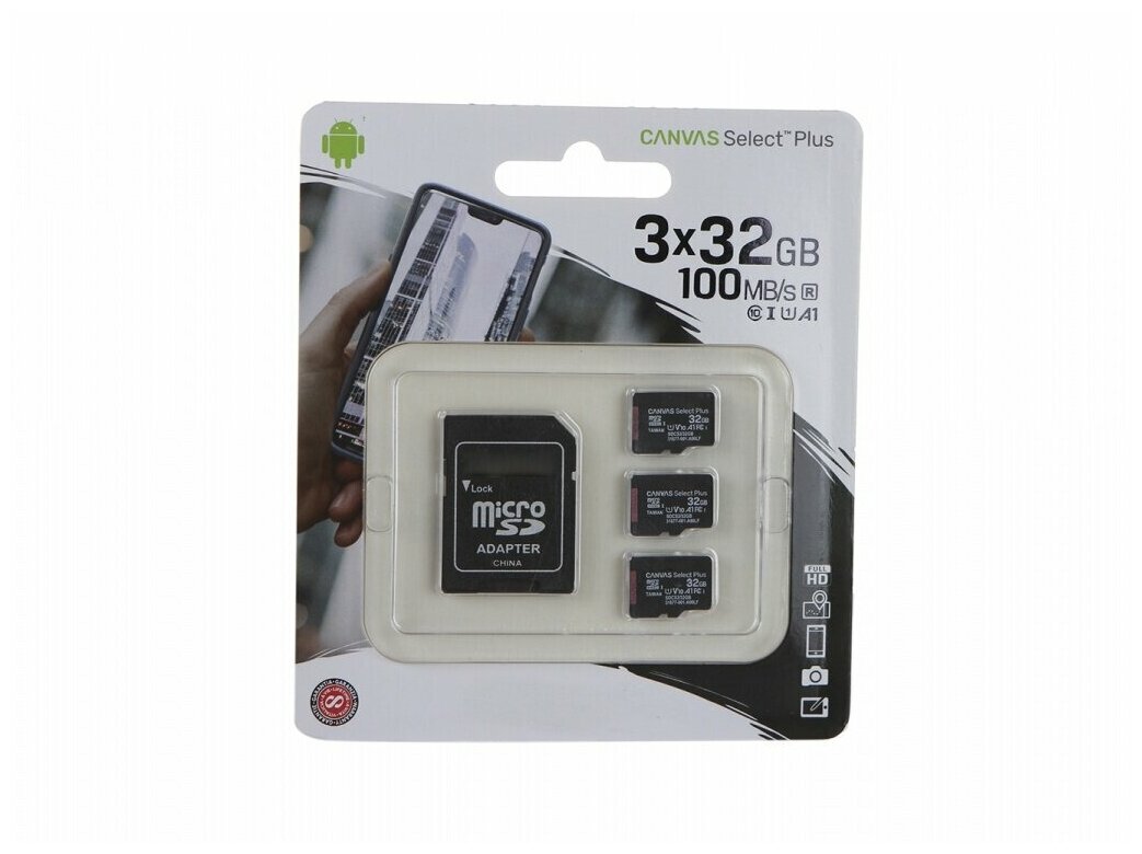 Карта памяти MicroSDHC 32GB Class 10 для Kingston Canvas Select Plus A1 100MB/s без адаптера