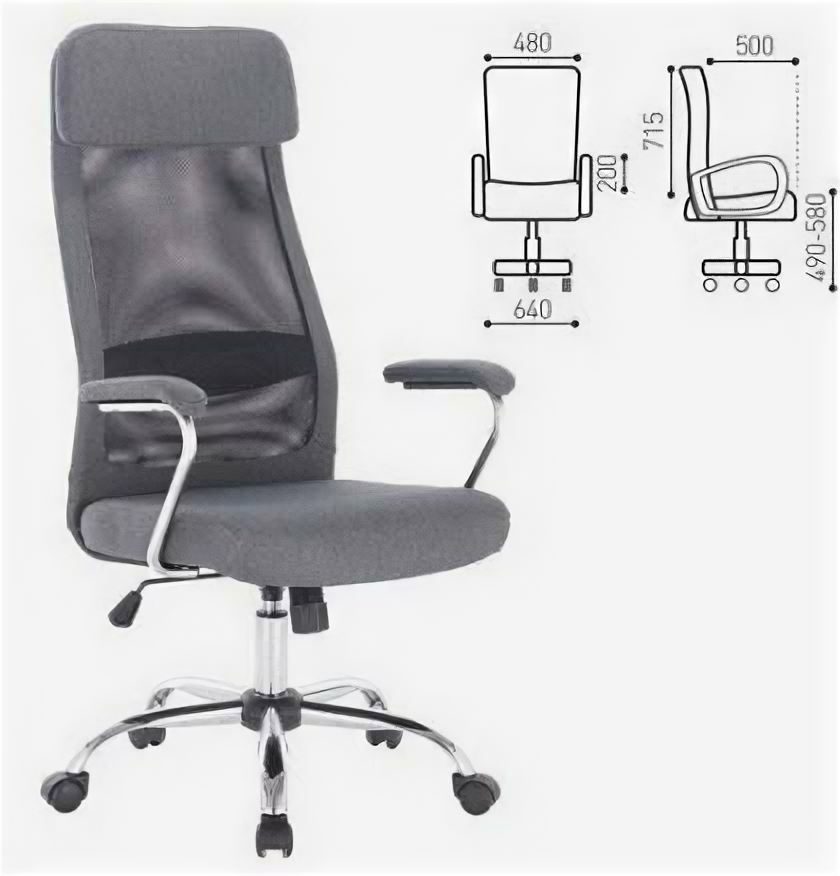 Кресло офисное Brabix хром, ткань, сетка, серое (531848)