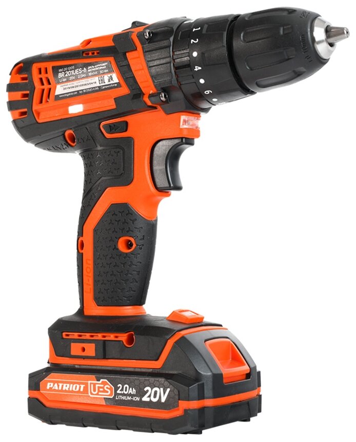 Дрель-шуруповерт Patriot BR 201UES-h 20В 2_0Ач 25/30Нм 10мм