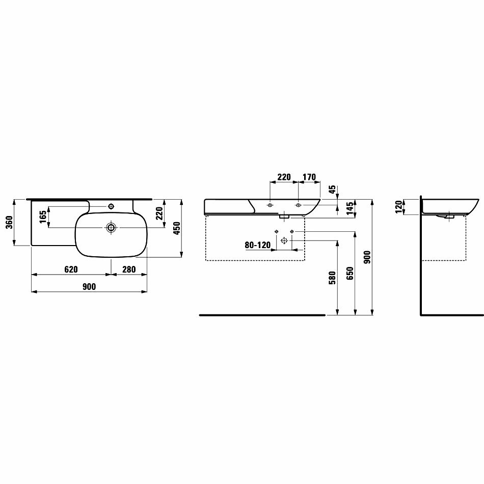 Умывальник Раковина Laufen Ino Saphir Keramik 90x45 8.1330.1.000.104.1 полочка слева