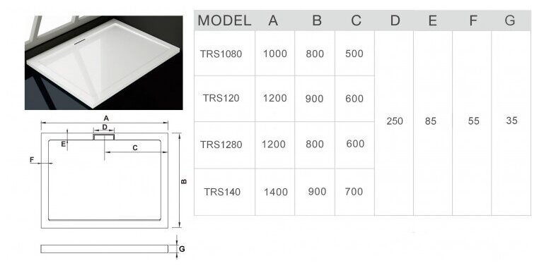 Поддон для душа Weltwasser TRS12090 с сифоном