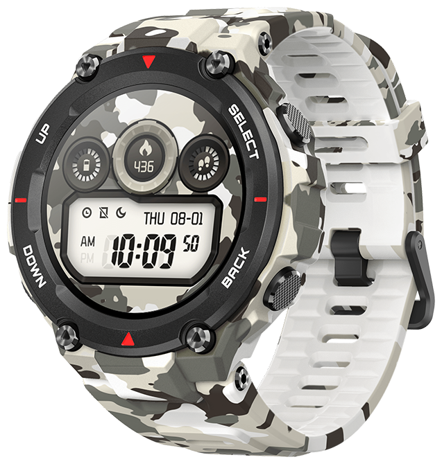Лучшие цены. Умные часы с 1.3-дюймовым экраном и 14 видами тренировочного режима Умные часы Amazfit T-Rex имеют 1.3-дюймовый AMOLED-экран, с разрешением 360x360. Изделие оборудовано удобным и приятным для кожи ремешком, который изготовлен из термопластичного полиуретана. Конструкция 47.7 х 47.7 х 13.5 мм с ремешком весит всего 58 г. С точки зрения спортивных функций, Amazfit T-Rex разработан с высокоточным двухспутниковым GPS-позиционированием ГЛОНАСС и поддерживает 14 видов тренировочного режима. Магазины в вашем городе.