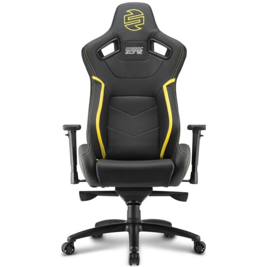 Игровое кресло Sharkoon Shark Zone GS10 компьютерное, до 120 кг, кожа PU/PVC, сталь, 3D, раскладывание спинки на 160 градусов, цвет: черный/желтый