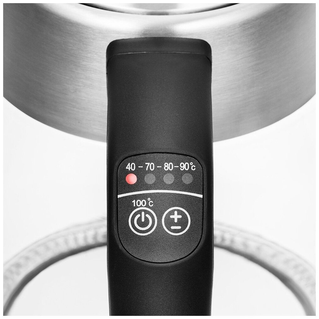 Чайник KITFORT КТ-6107, 1,7 л, 2200 Вт, закрытый нагревательный элемент, терморегулятор, стекло, черный