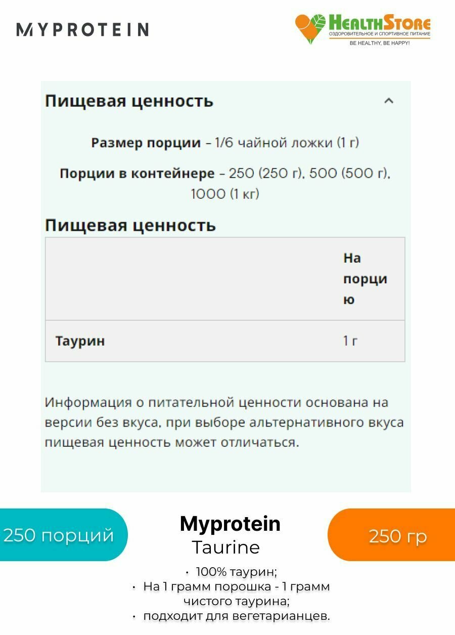 Аминокислоты Отдельные аминокислоты Myprotein Taurine 250 гр.