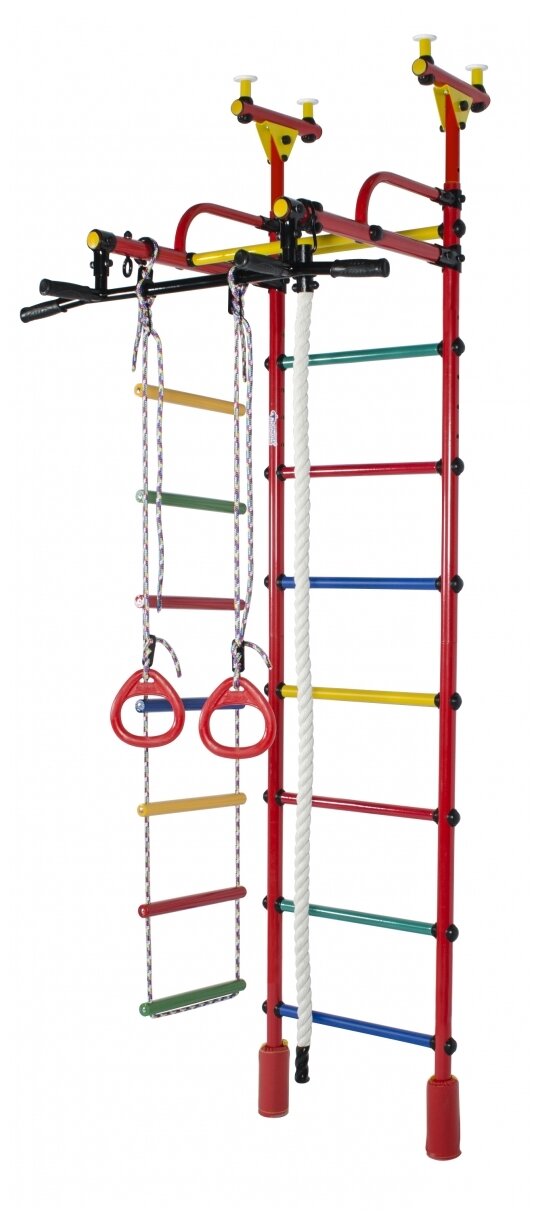 Шведская стенка распорная Формула здоровья Жирафик (Красный радуга) - детский спортивный комплекс для дома